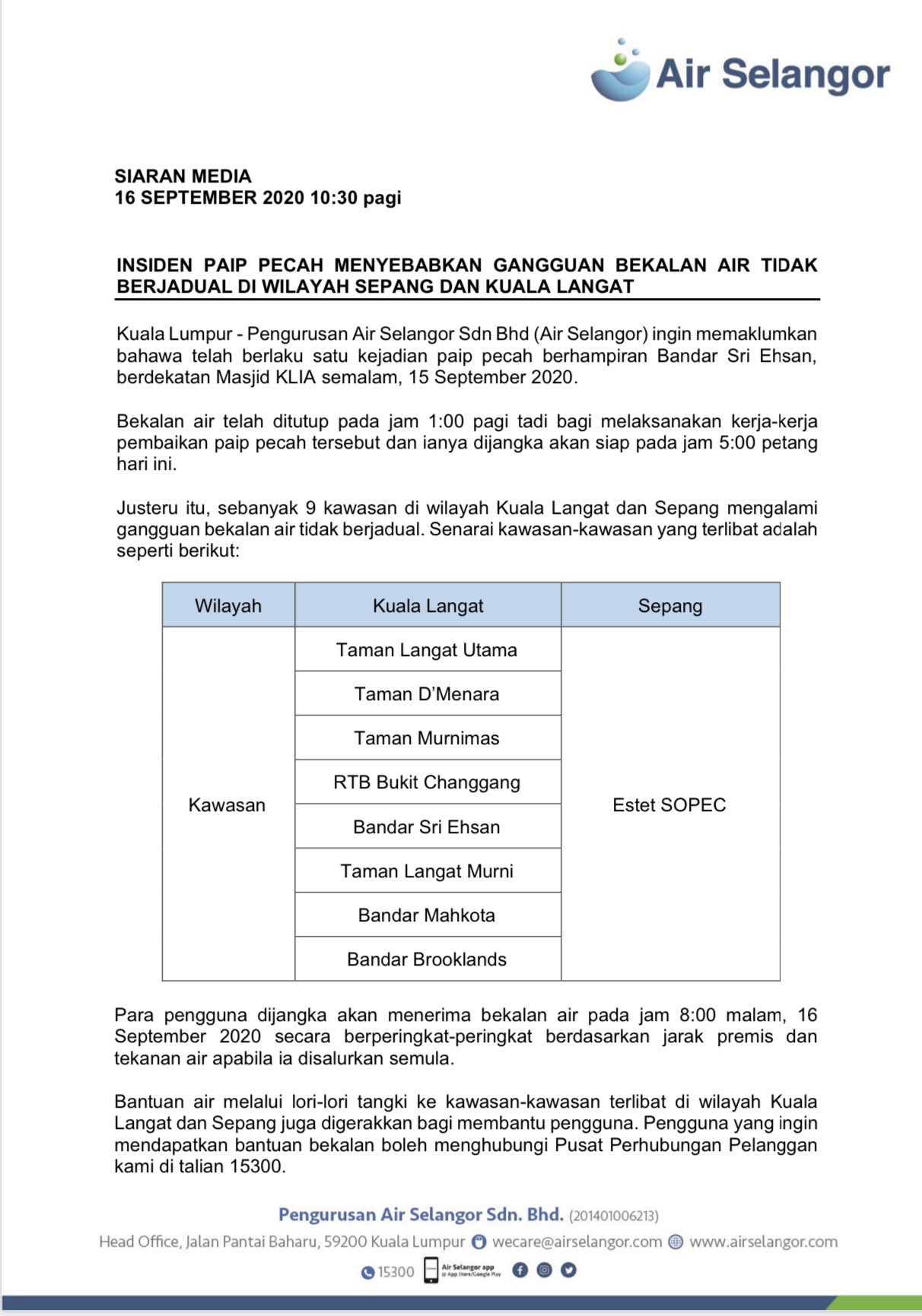 Air Selangor On Twitter Siaran Media Insiden Paip Pecah Menyebabkan Gangguan Bekalan Air Tidak Berjadual Di Wilayah Sepang Dan Kuala Langat Https T Co En5wftqr4n Twitter