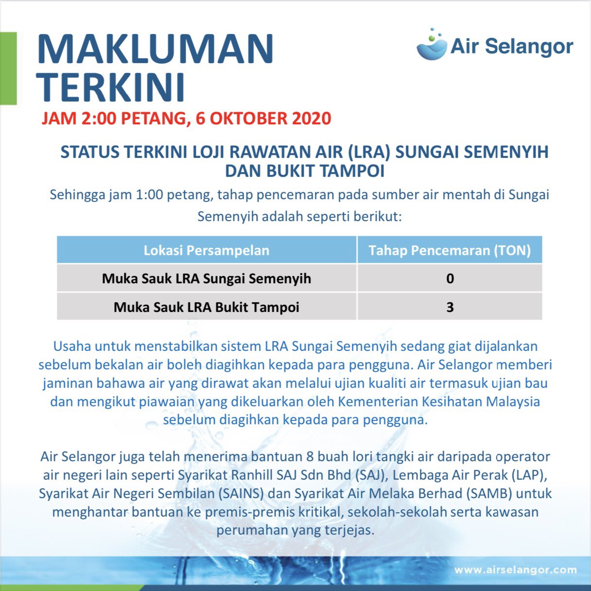 Air Selangor On Twitter Status Gangguan Bekalan Air Tidak Berjadual Berikutan Henti Tugas Loji Rawatan Air Sg Semenyih Dan Bukit Tampoi Maklumat Akan Dikemaskini Dari Semasa Ke Semasa Di Twitter Facebook Instagram